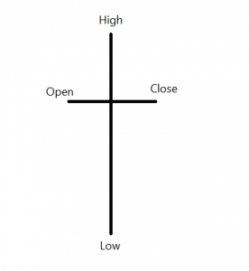 • The open and close are virtually the same, with long upper and lower shadows.