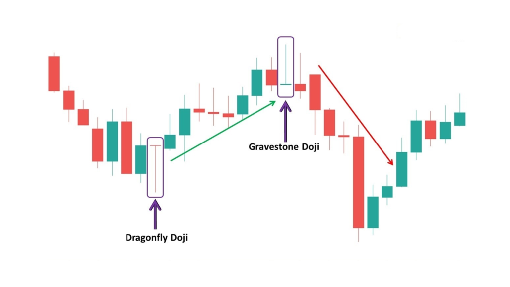 • Dragonfly Doji vs. Gravestone Doji: